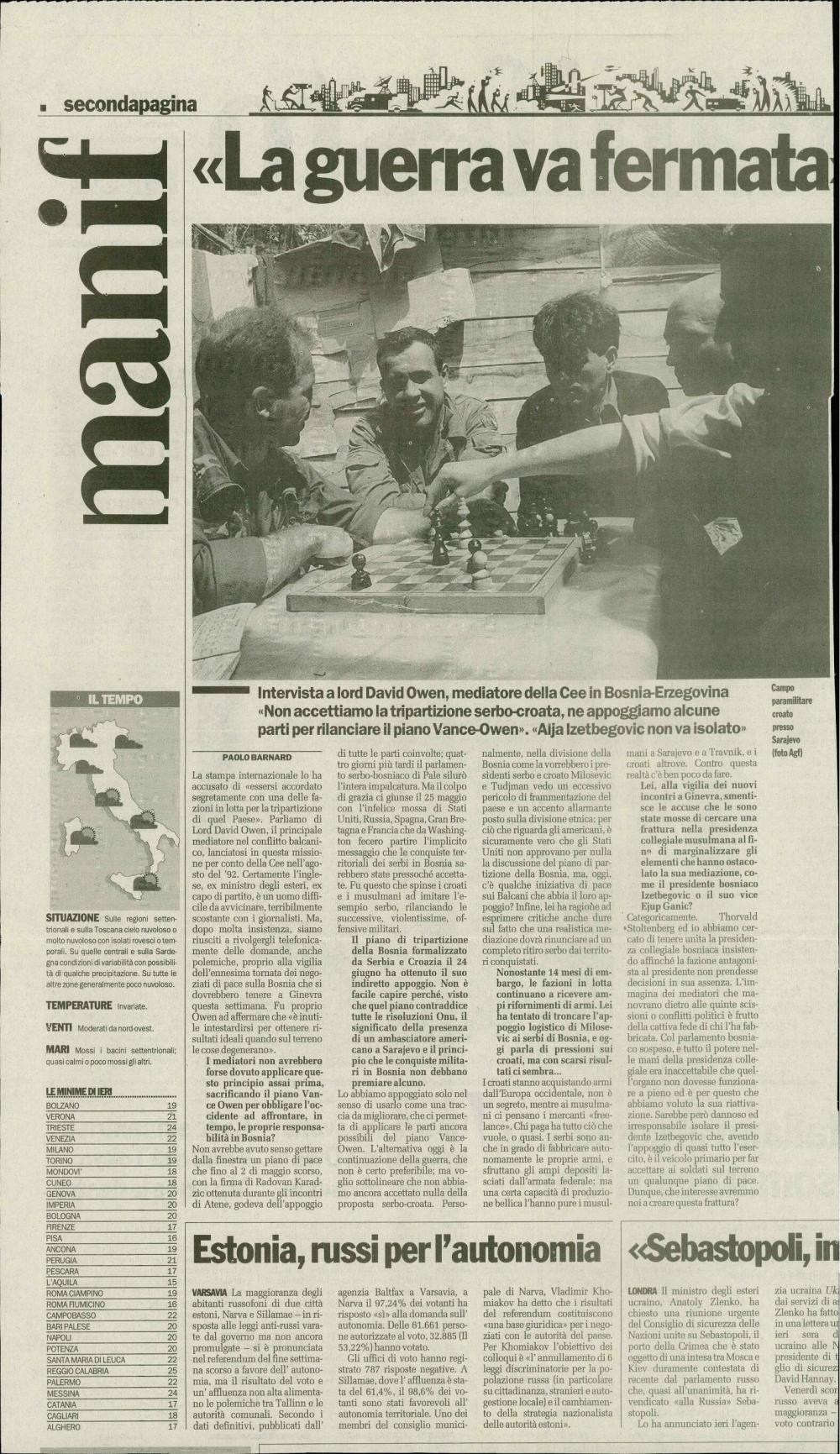 Bosnia alla svolta : Intervista a Owen: «No alla divisione»