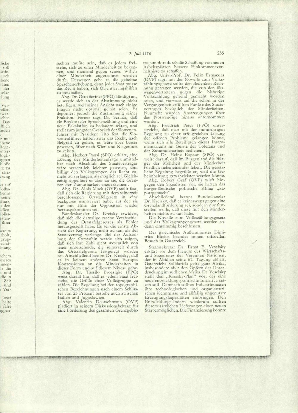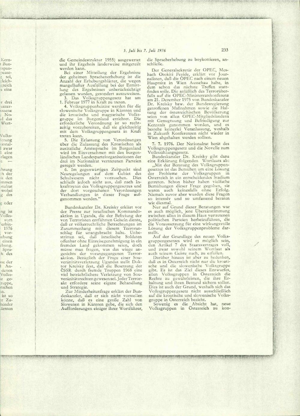Chronik zur österreichischen Aussenpolitik, 1. Juli bis 31. August 1976