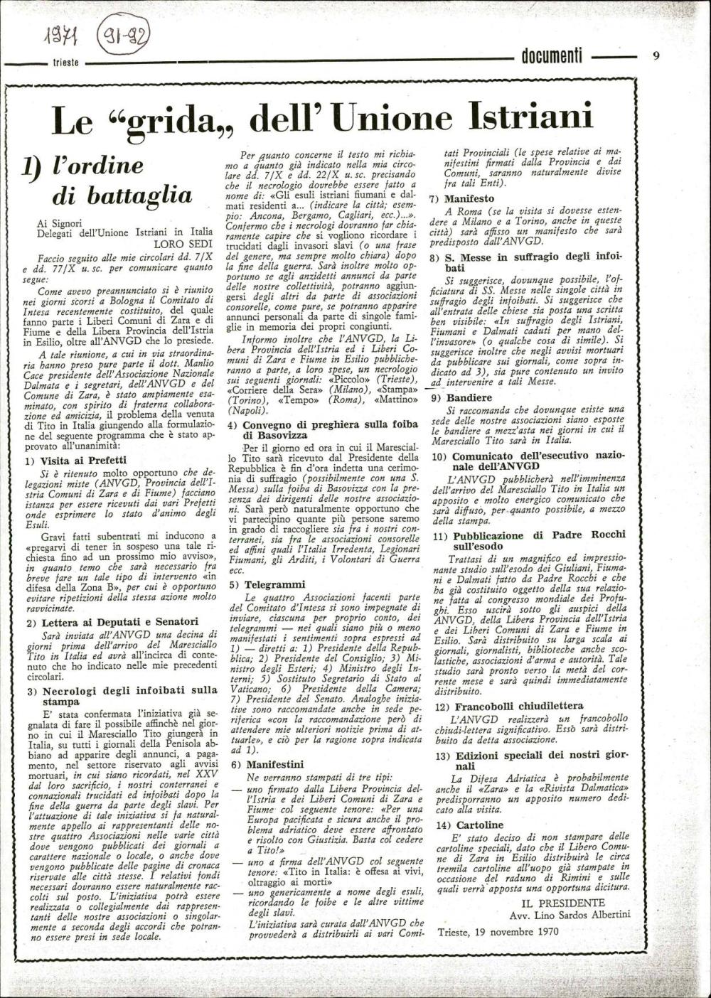 Lino Sardos Albertini: Le “grida” dell’Unione Istriani.