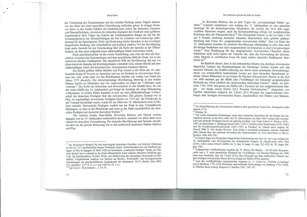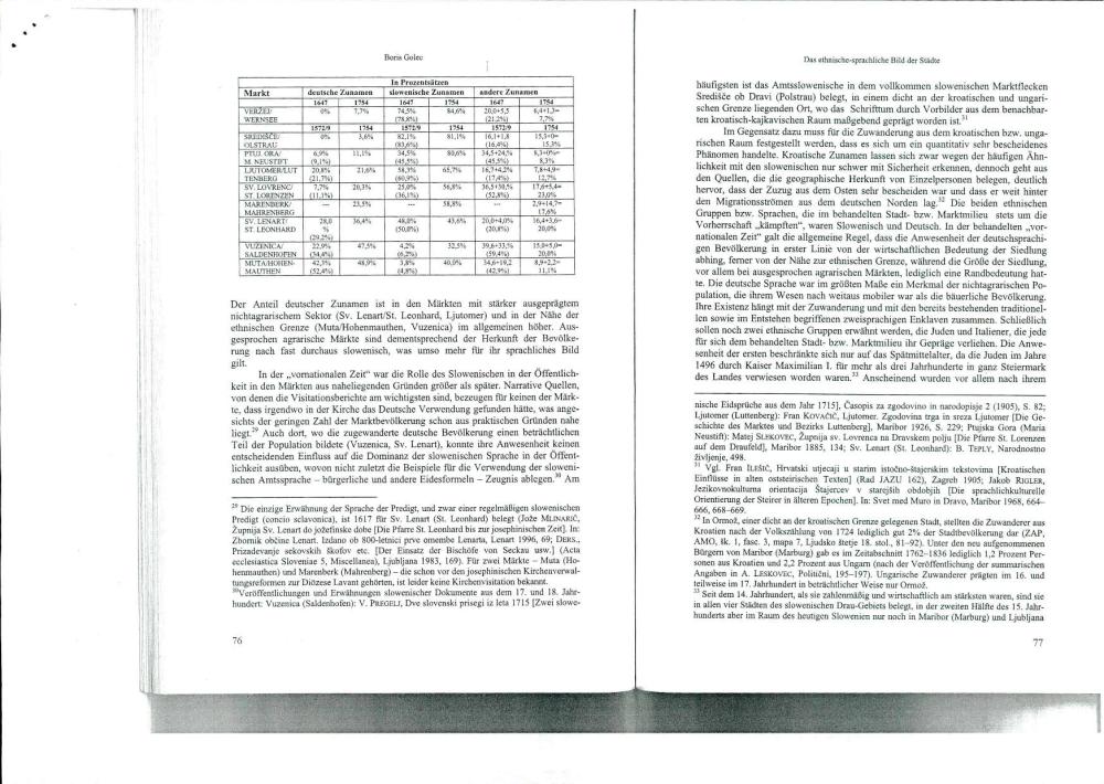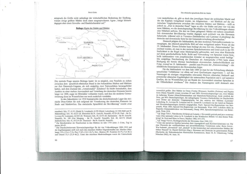 Das Ethnisch-Sprachliche Bild der Städte Und Märkte im Slowenischen Drau-Gebiet in „Vornationaler" Zeit