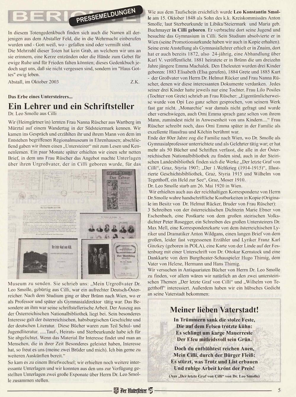 Der Untersteirer: Mitteilungsblatt der Landsmannschaft und des Hilfsvereines der Deutsch - Untersteirer in Österreich