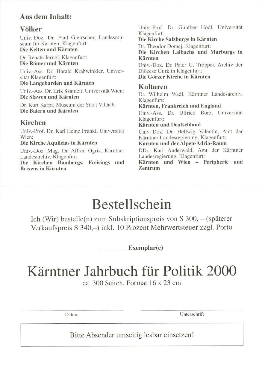 Diplomatski arhivi iz Pariza in naročilnica za Koroški politični letopis iz leta 2000.