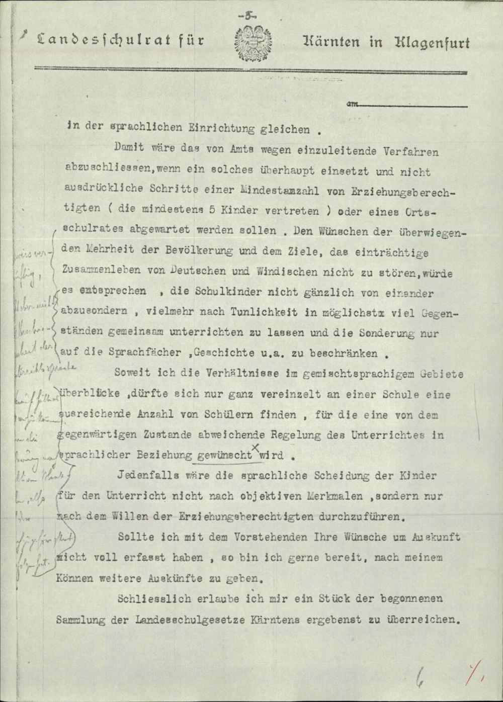 Dopis glede nove ureditve manjšinskega šolstva na Koroškem