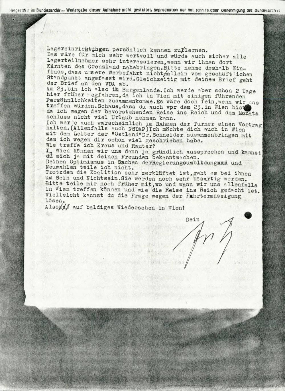 Dopis o predavanju Verein für Deutsche Kulturbeziehungen im Ausland
