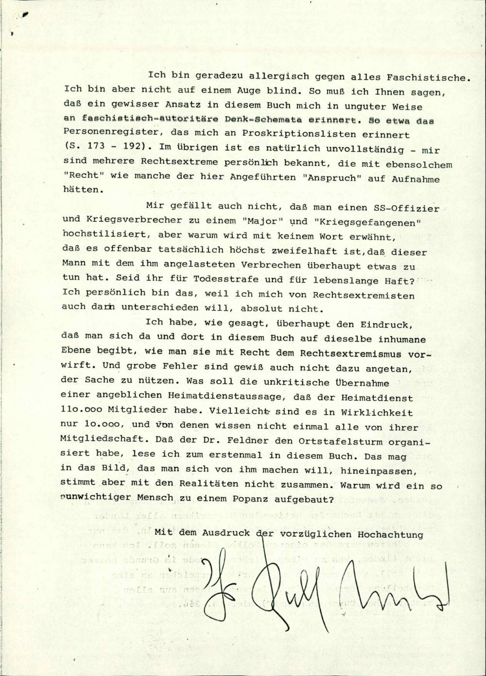 Dopis: Razmišljanje o vsebini knjige "Rechtsextremismus in Österreich"