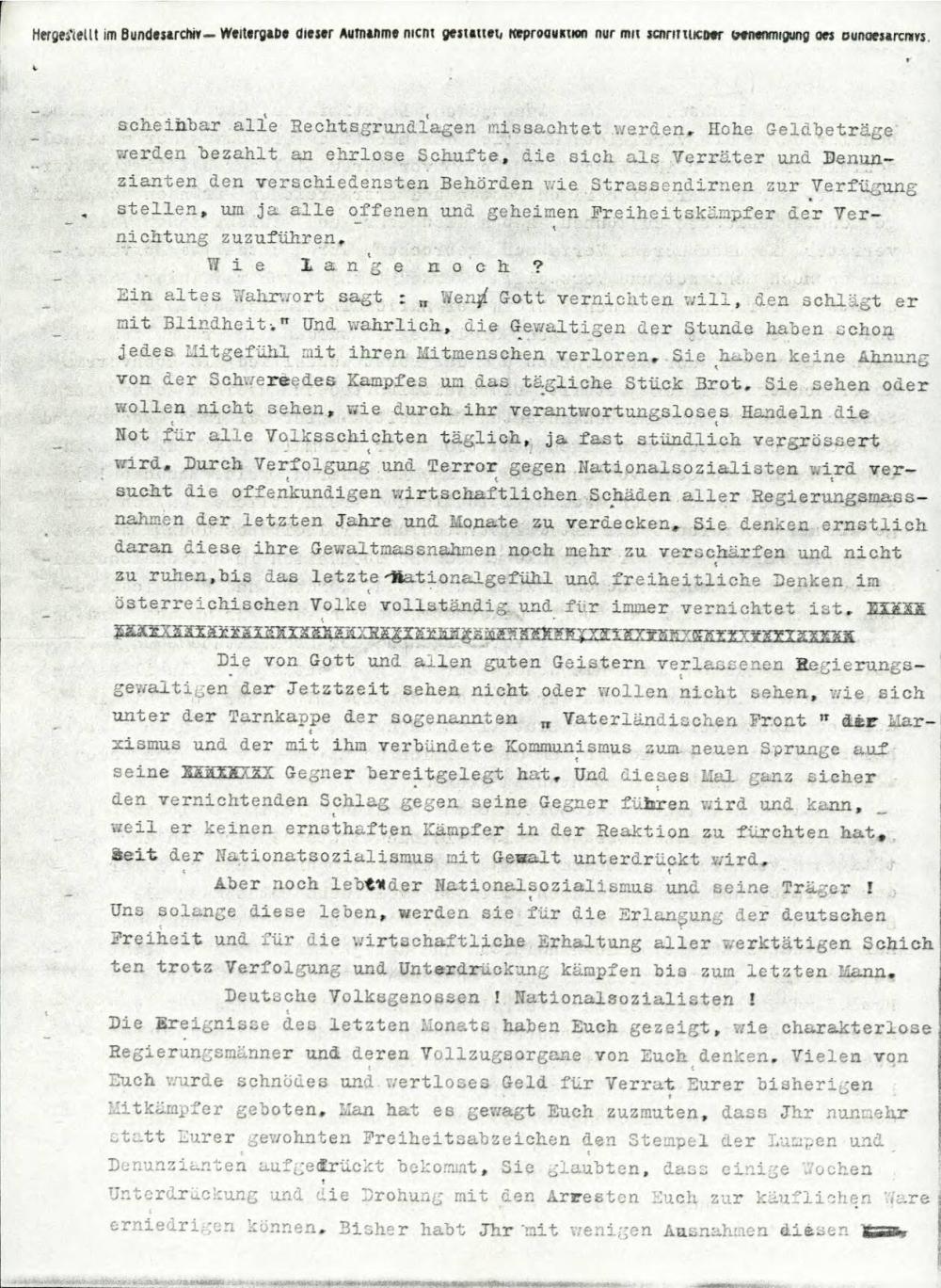 Dopis z opisom političnih razmer in nacizma v Avstriji