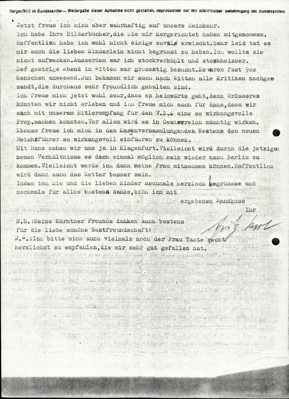 Dopis z opisom srečanja z Adolfom Hitlerjem