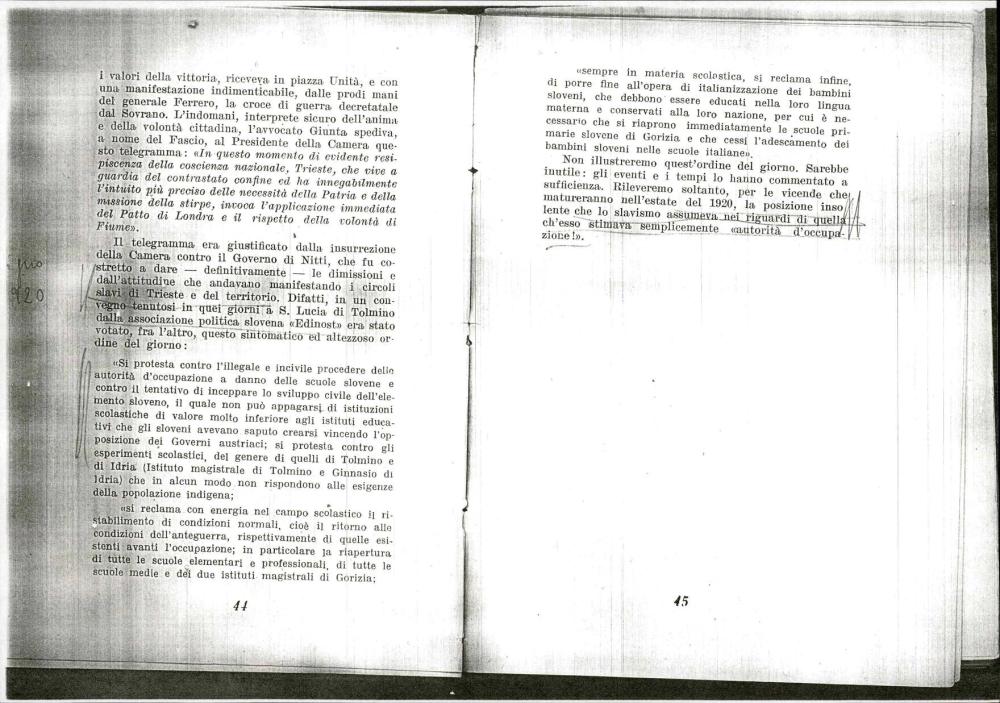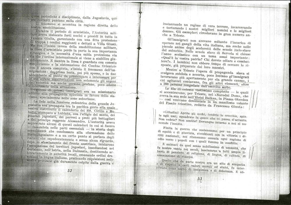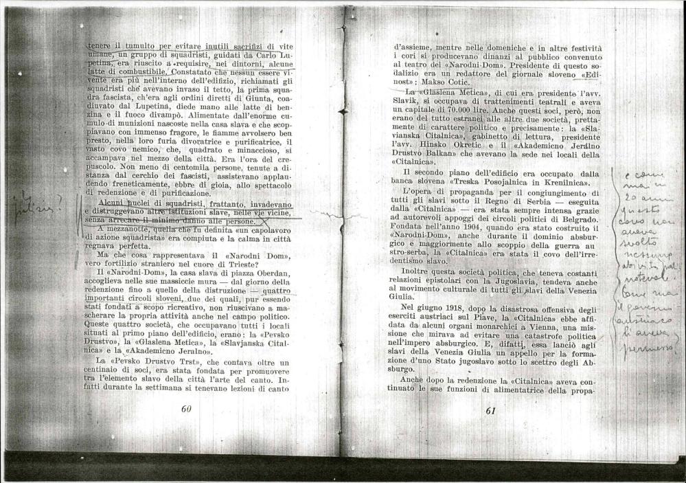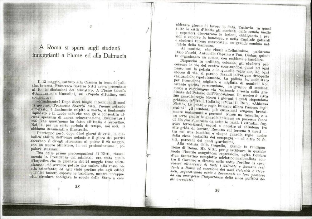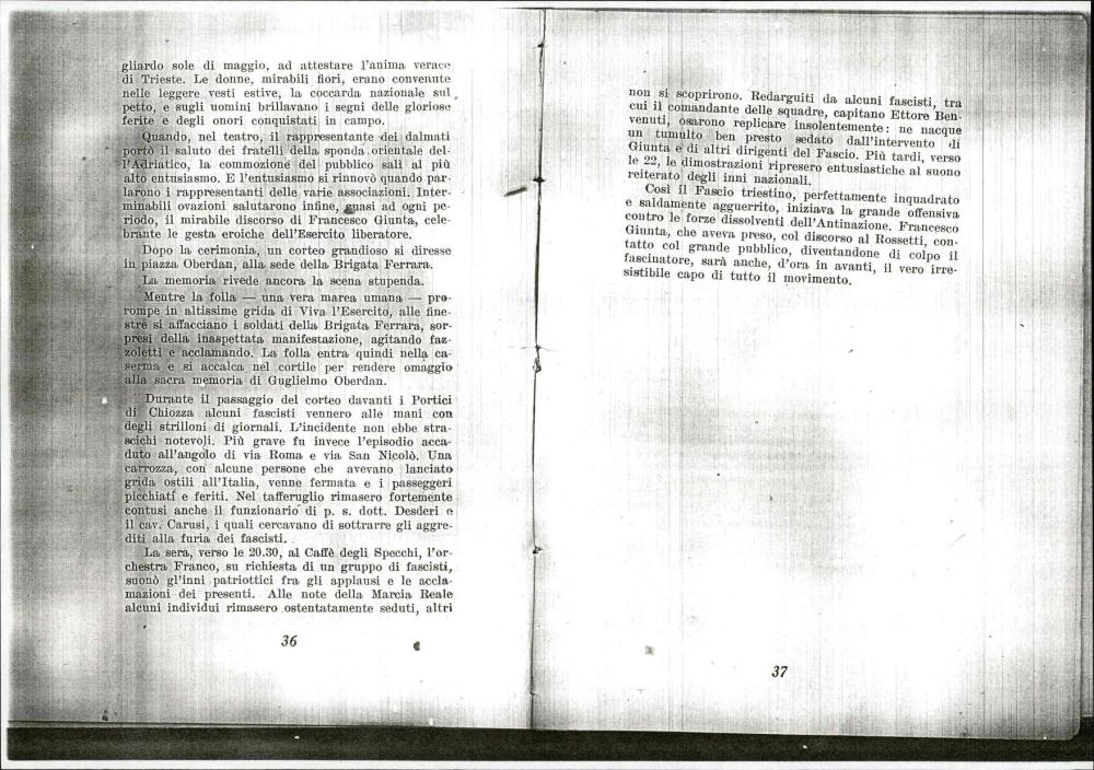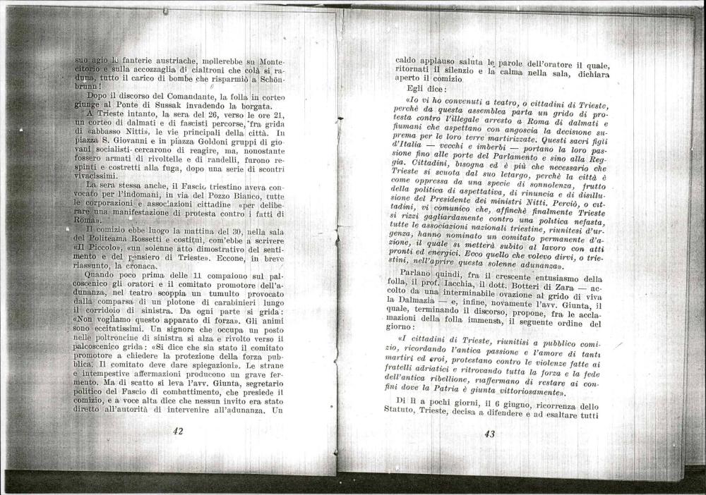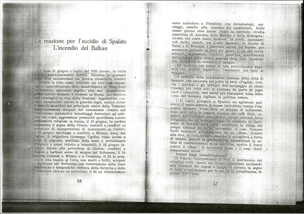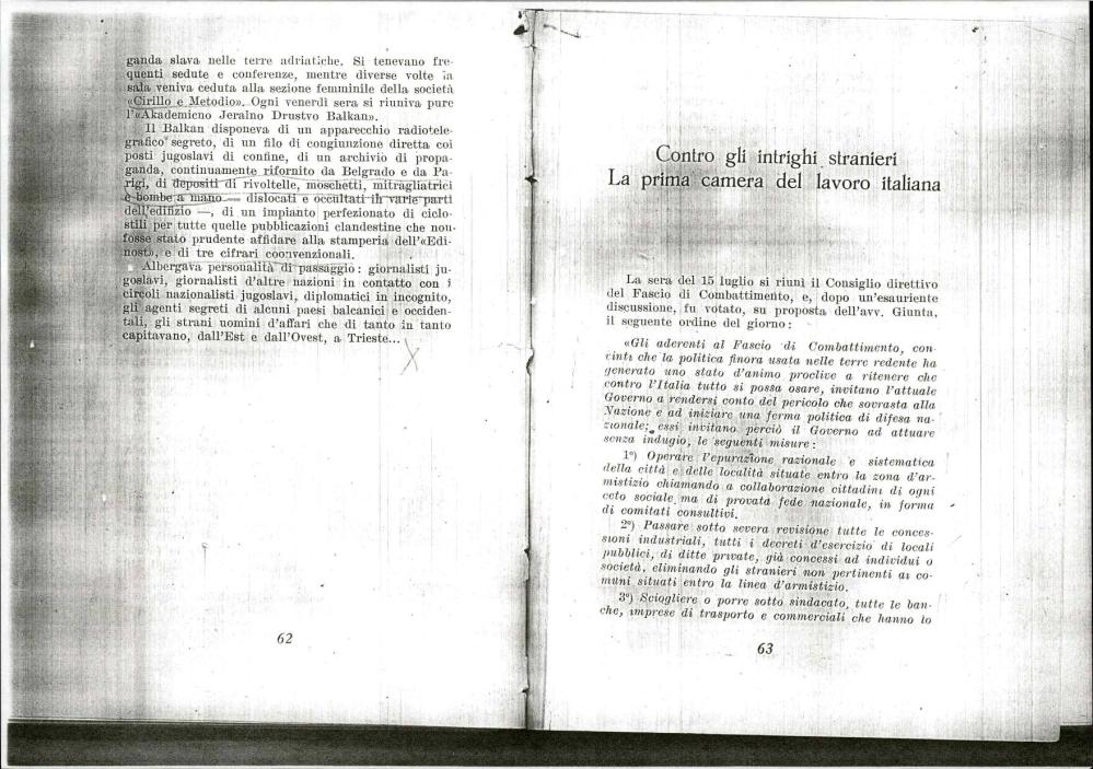 Knjiga opisuje vzpon fašističnega gibanja v Trstu in širši regiji Julijske krajine med letoma 1919 in 1920, poudarja njegovo organizacijo, konflikte z jugoslovanskimi in socialističnimi skupinami ter vrhunec v nasilnih dogodkih, kot je požig Narodnega doma, vse v kontekstu italijanskega nacionalizma in povojne politične nestabilnosti.