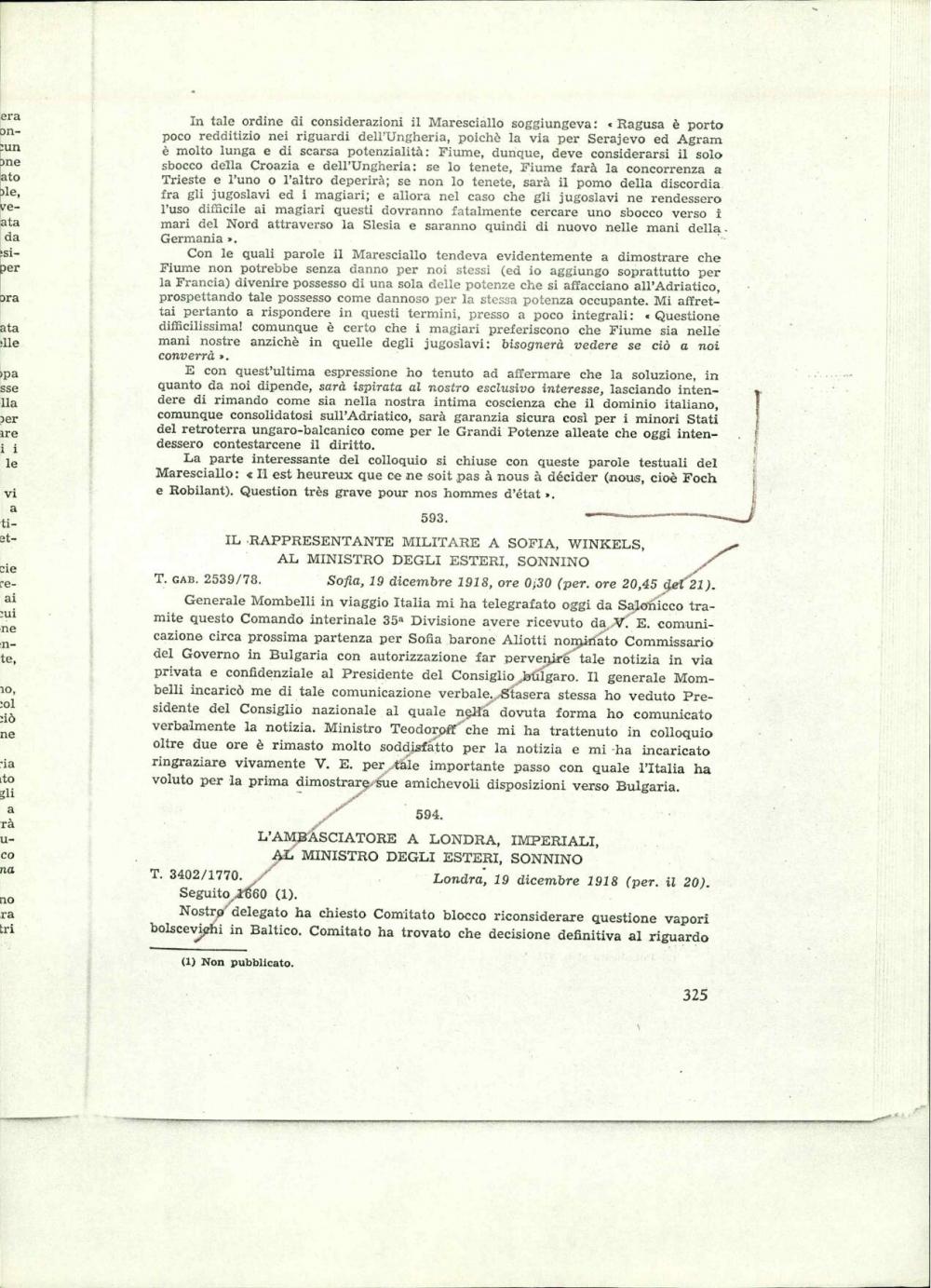 Il rappresentante militare presso il consiglio supremo interalleato a Versailles di Robilant al presidente del consiglio, Orlando