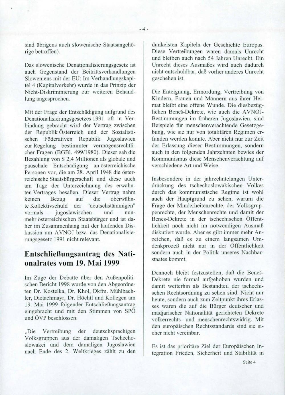 Information zum Thema "Beneš-Dekrete und AVNOJ Bestimmungen"