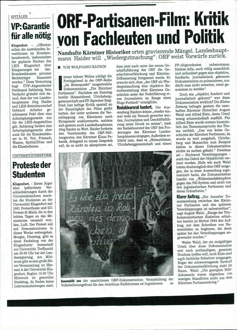 Kurze Antwort auf die Stellungnahme der Rechtsabteilung des ORF zur Beschwerde „Kärntner Partisanen“