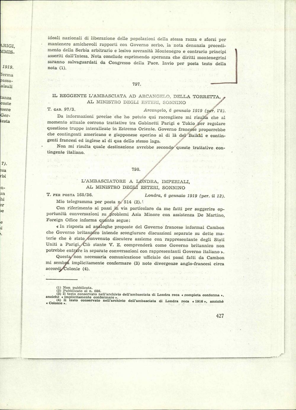 L 'ambasciatore a Parigi, Bonin Longare, al ministro degli esteri, Sonnino