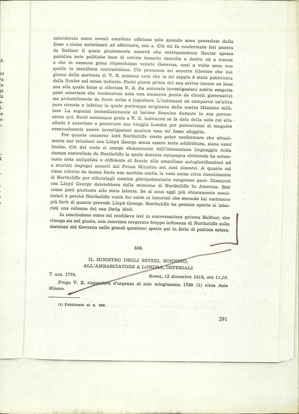 L'ambasciatore a Londra, Imperiali, al presidente del consiglio, Orlando