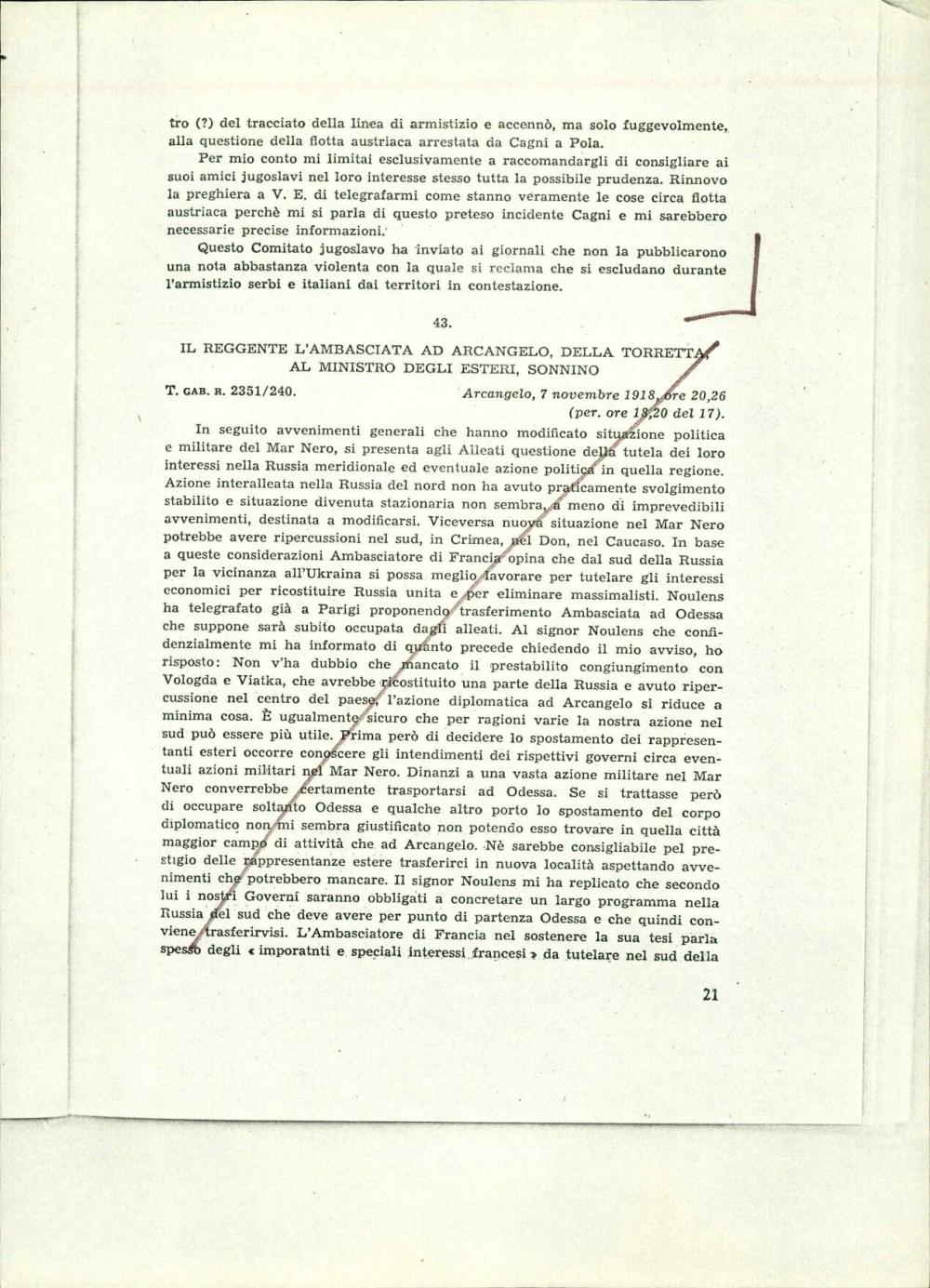 L'ambasciatore a Parigi, Bonin Longare, al ministro degli esteri, Sonnino