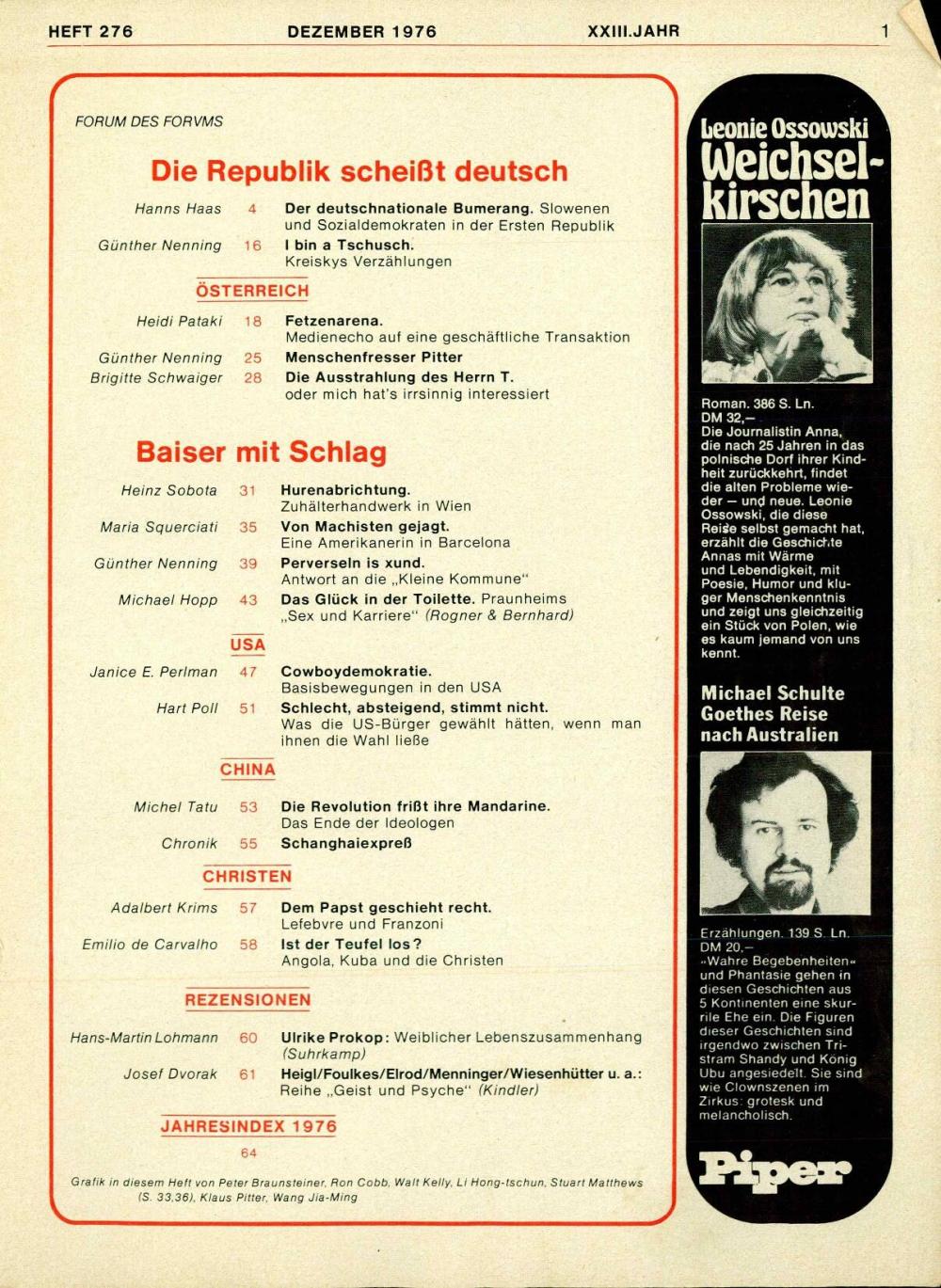 Neues Forum, Heft 276, Dezember 1976, XXIII. Jahr