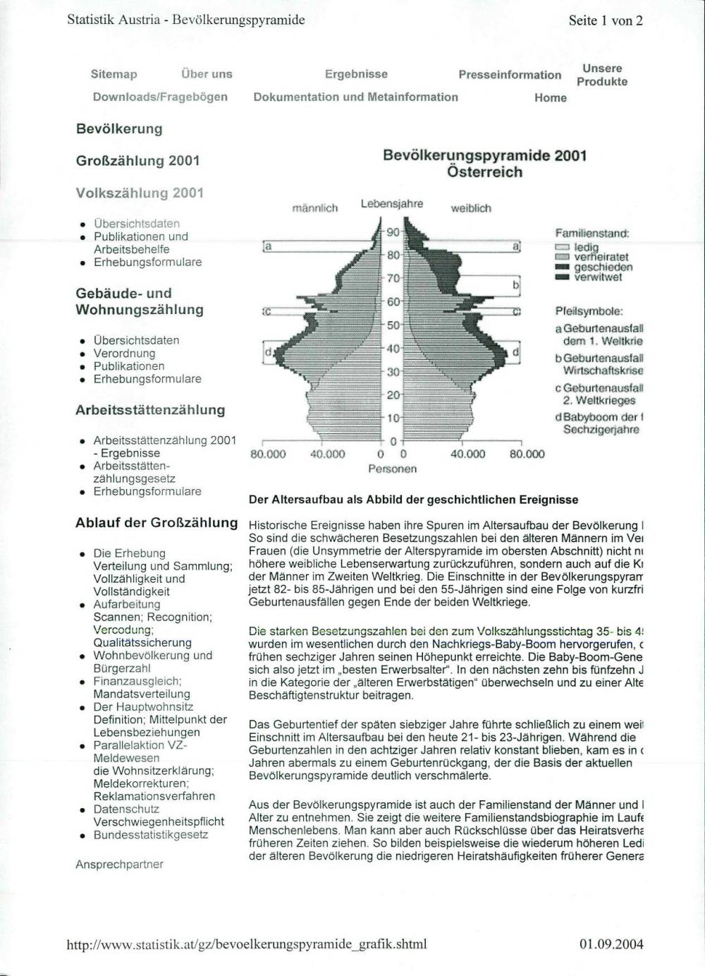 Personen mit Universitäts-, Hochschul- bzw. Fachhochschulabschluss in % der Bevölkerung 1991 und 2001 / Bevölkerung, Großzählung 2001, Bevölkerungspyramide 2001 - Österreich