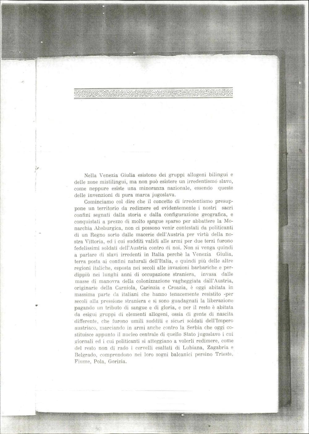 Poglavja iz knjige, ki zagovarja italijansko nacionalistično in fašistično politiko do slovanske manjšine v Julijski krajini, zanika obstoj narodne manjšine in poziva k popolni asimilaciji.