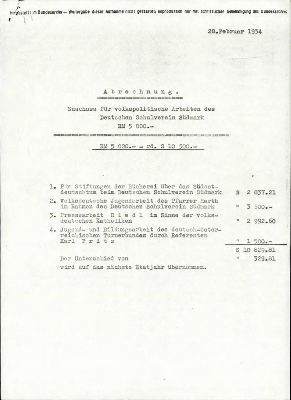 Predlog obračuna subvencije za nacionalno politično delo Deutschen Schulverein Südmark