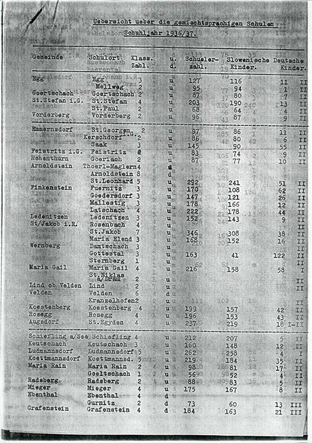 Pregled jezikovno mešanih šol v šolskem letu 1936 / 1937