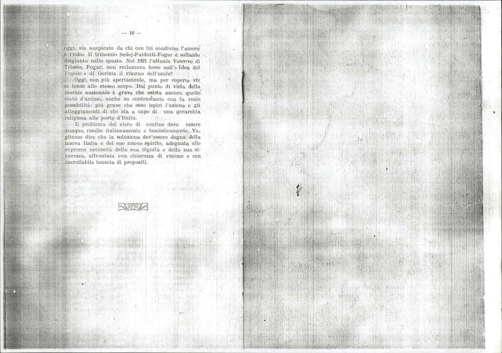 Gre za politično in ideološko obarvan tekst, ki obravnava vprašanje slovenskega katoliškega klera v Goriški nadškofiji in širše v Julijski krajini po priključitvi Italiji. Pisenti izraža zaskrbljenost nad vplivom slovenskih duhovnikov, ki jih vidi kot nosilce protitalijanskega nacionalizma, in poziva k njihovi zamenjavi z italijanskimi duhovniki ter k italijanizaciji cerkvenih struktur.