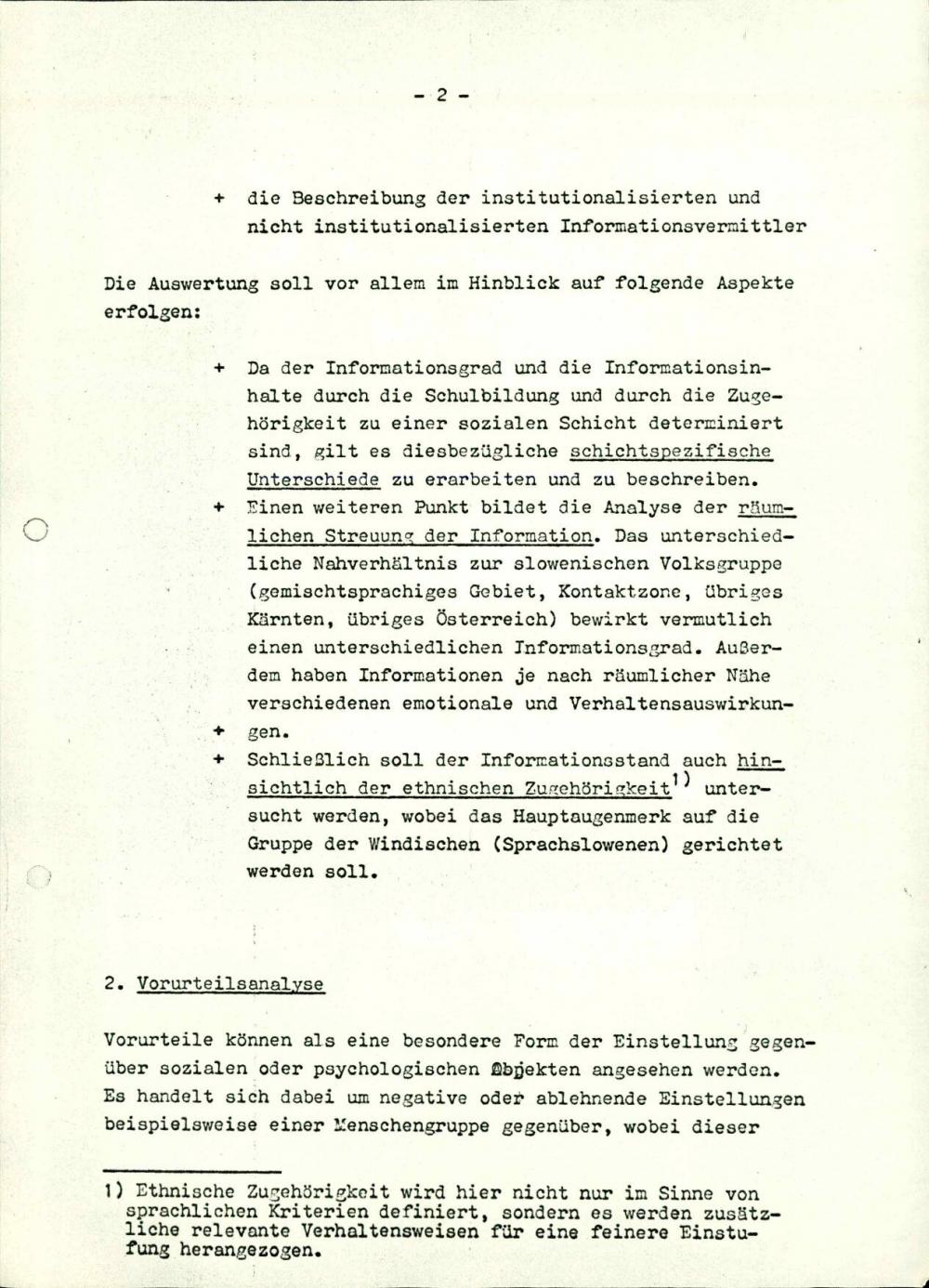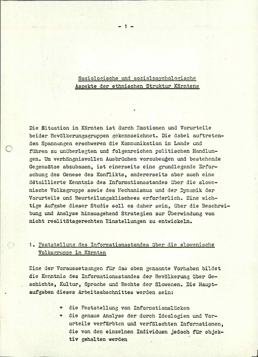 Projektentwurf "Soziologische und sozialpsychologische Aspekte der ethnischen Struktur Kärntens"