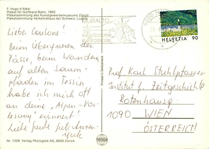Razglednica poslana prof. Karlu Stuhlpfarrerju