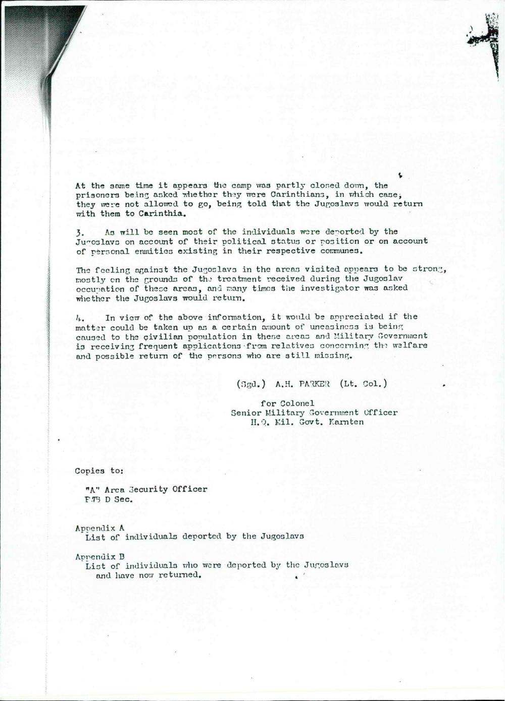 Report on deportation of Austrian Nationals during the Period May / June 1945 from the area of Southern Canthia by the Jugoslavs