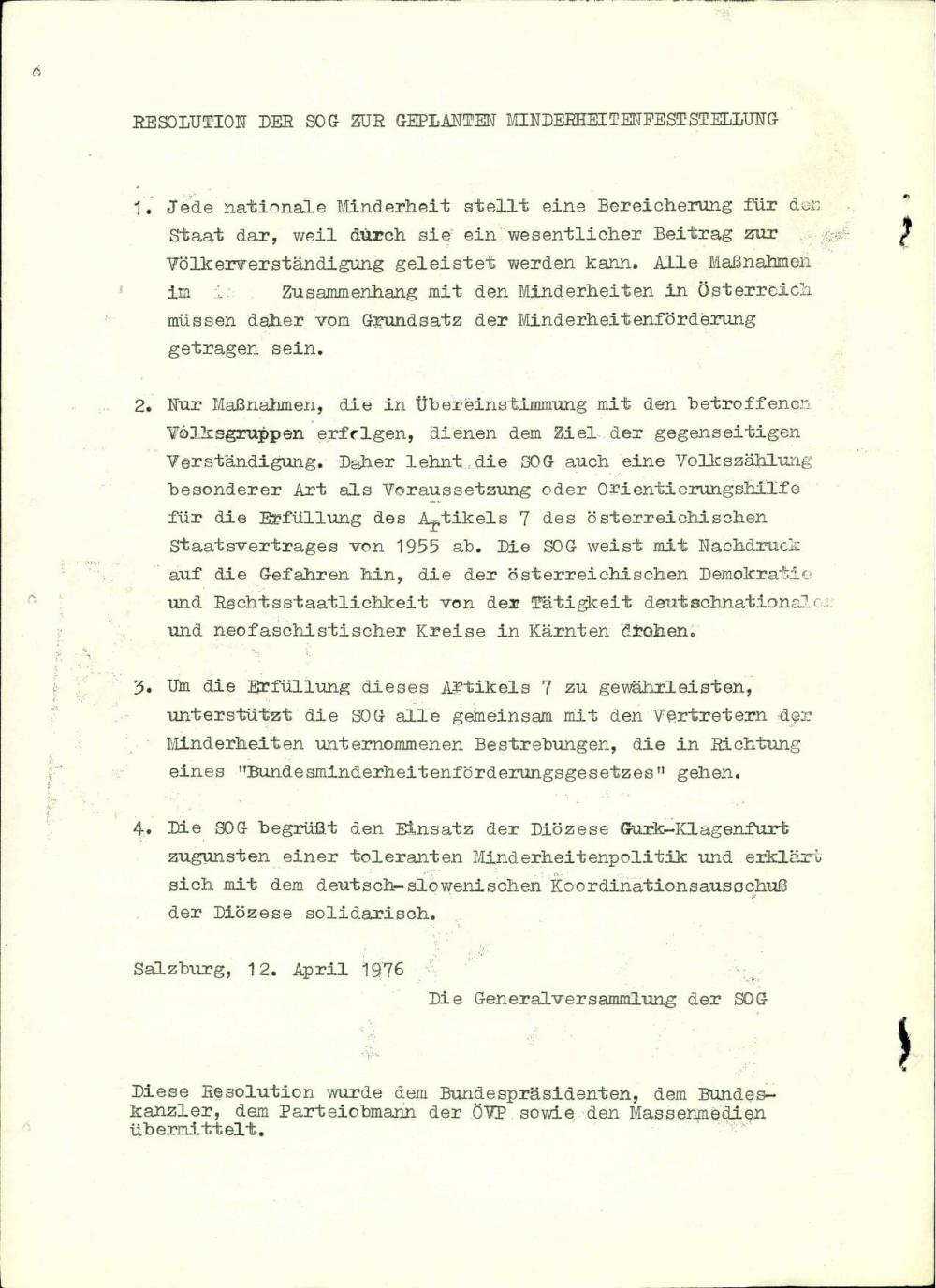 Resolution der SOG zur geplanten Minderheitenfeststellung