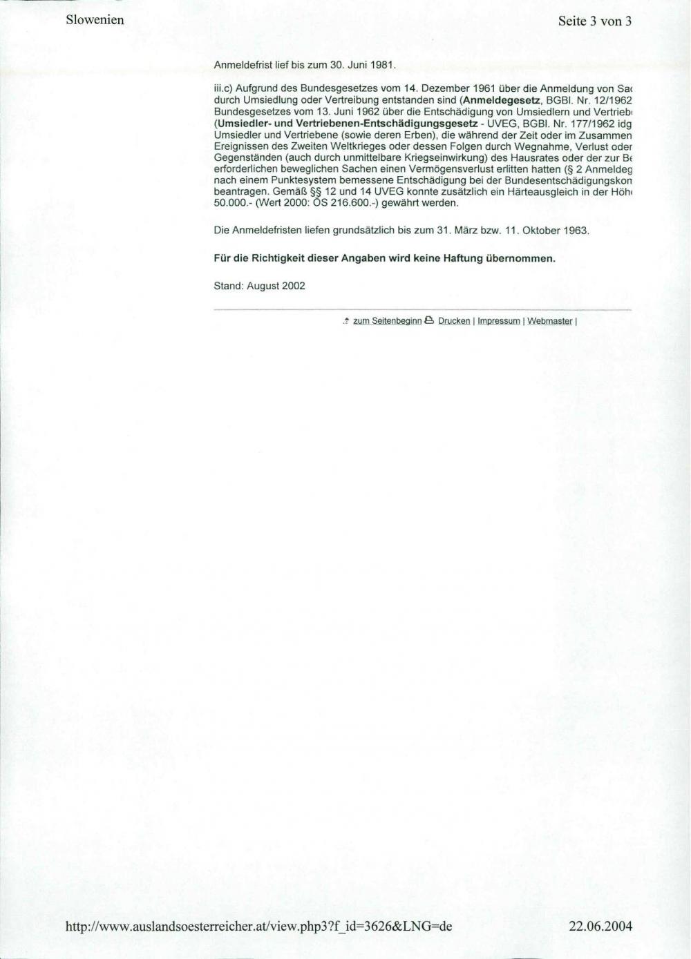 Restitution von auf dem Gebiet der Republik Slowenien enteignetem Vermögen