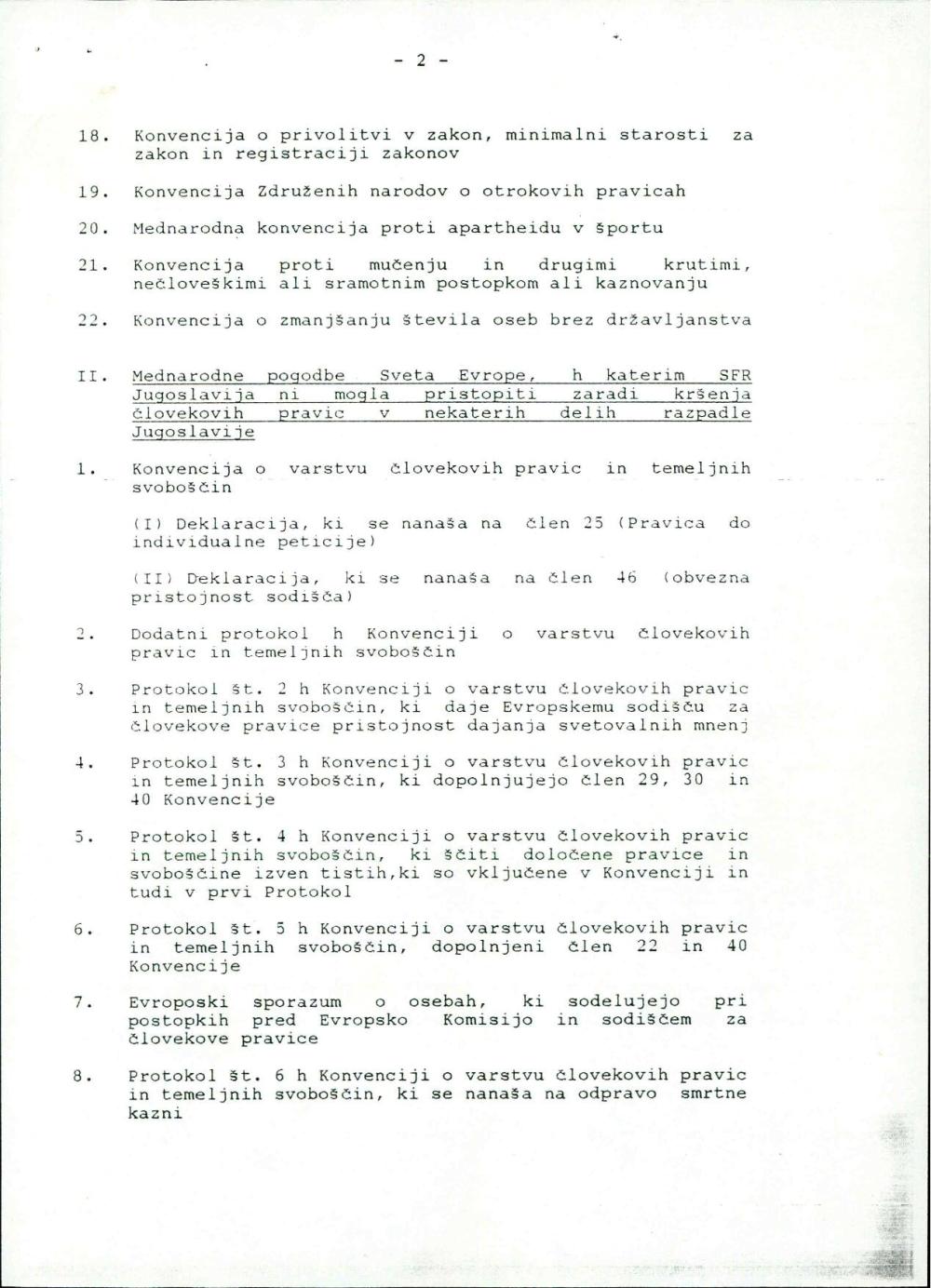 Spisek pogodb mednarodnega prava s področja človekovih pravic, katere Republika Slovenija spoštuje kot pravna naslednica SFR Jugoslavije