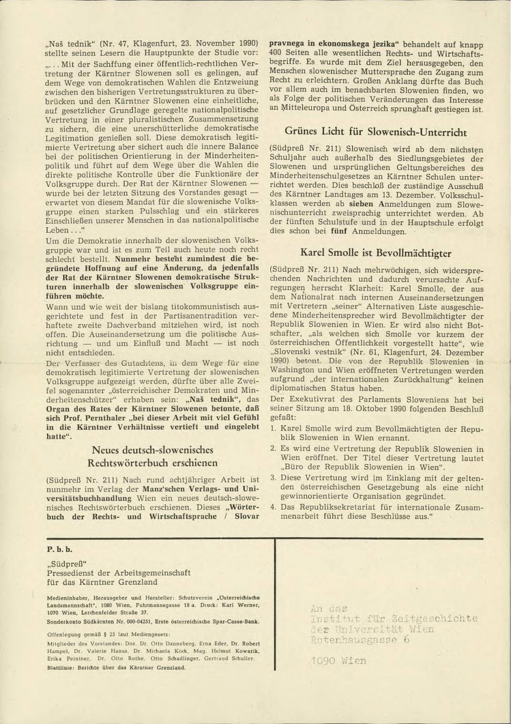"Südpress" - Pressedienst der Arbeitsgemeinschaft für das Kärntner Grenzland, Nr. 211