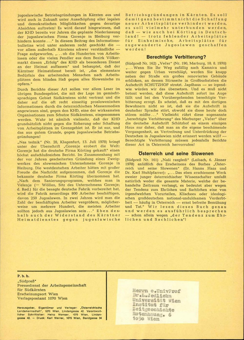 »Südpress« : Pressedienst der Arbeitsgemeinschaft für Südkärnten; številka: 162
