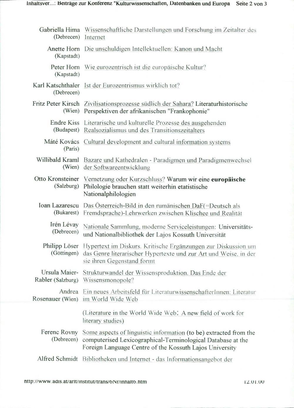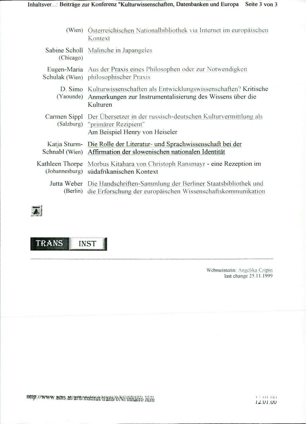 TRANS – Internet Zeitschrift für Kulturwissenschaften: Inhaltsverzeichnis / vsebina, Nr. 6