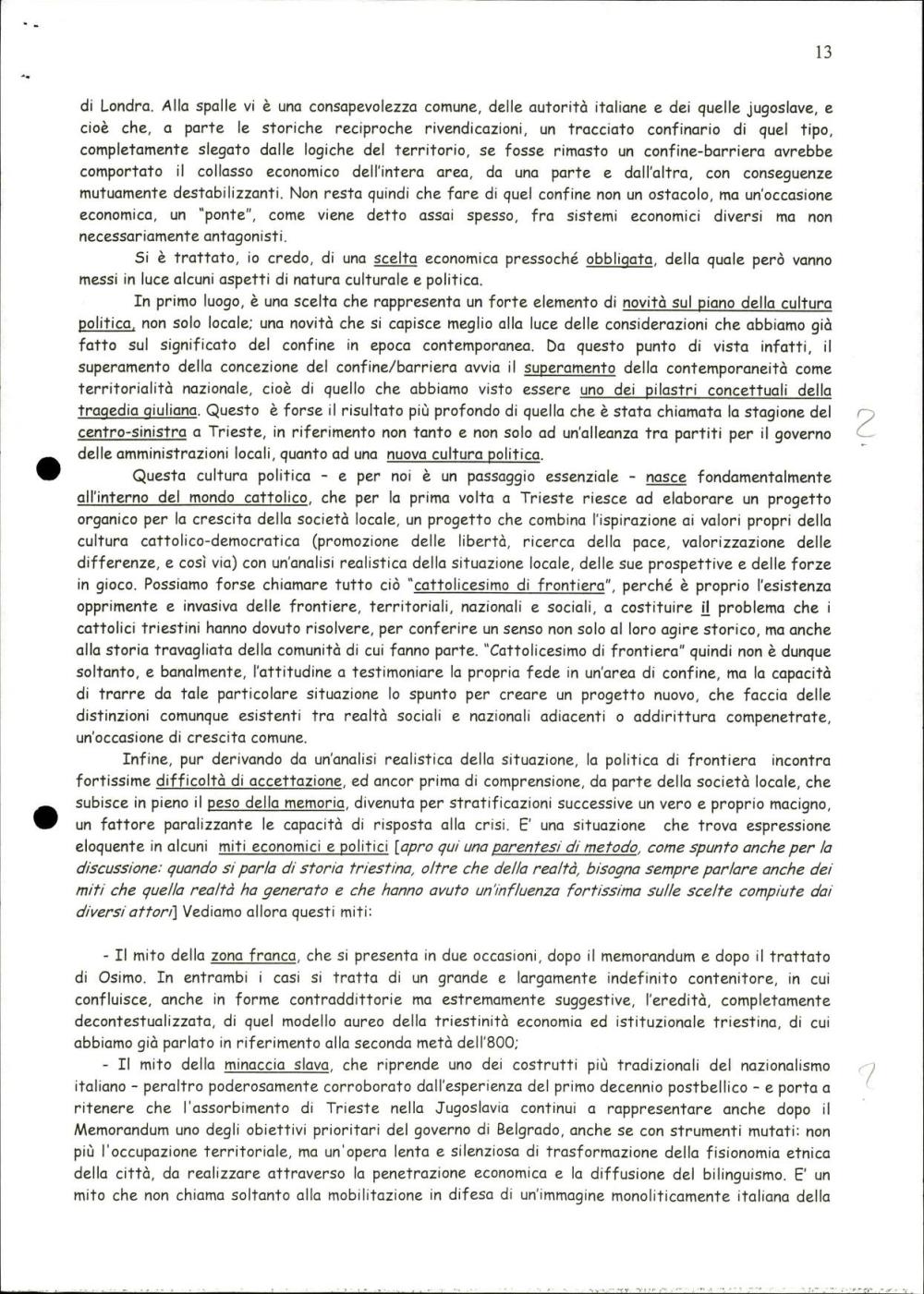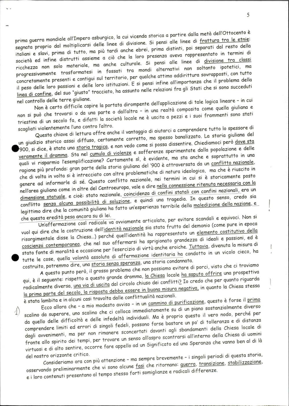 Zgodovinsko predavanje o Trstu kot mestu na meji, ki analizira vpliv nacionalnih konfliktov, fašizma, povojnih sprememb in vloge Cerkve v 20. stoletju ter poziva k razmisleku o prihodnosti mesta in skupnosti.
