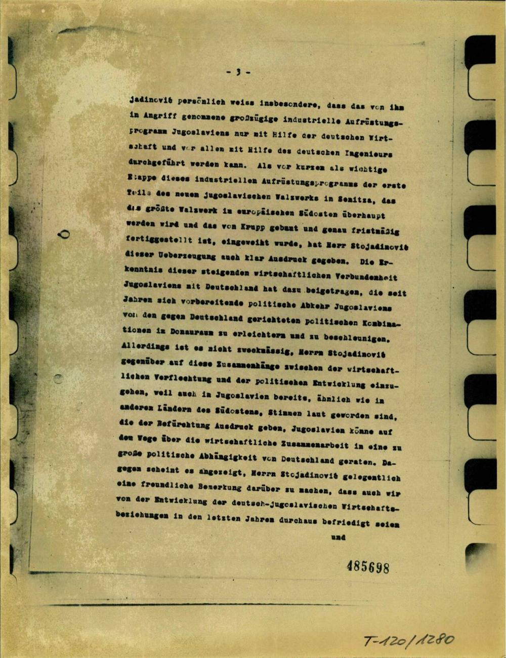 Über die deutsch – jugoslawischen Wirtschaftsbeziehung für etwaige Besprechungen mit dem Jugoslawischen Ministerpräsidenten und Aussenminister Stojadinović
