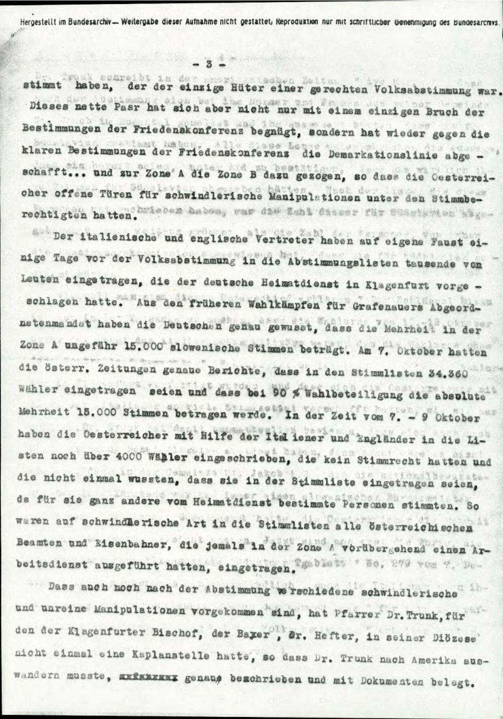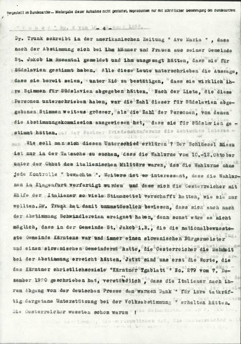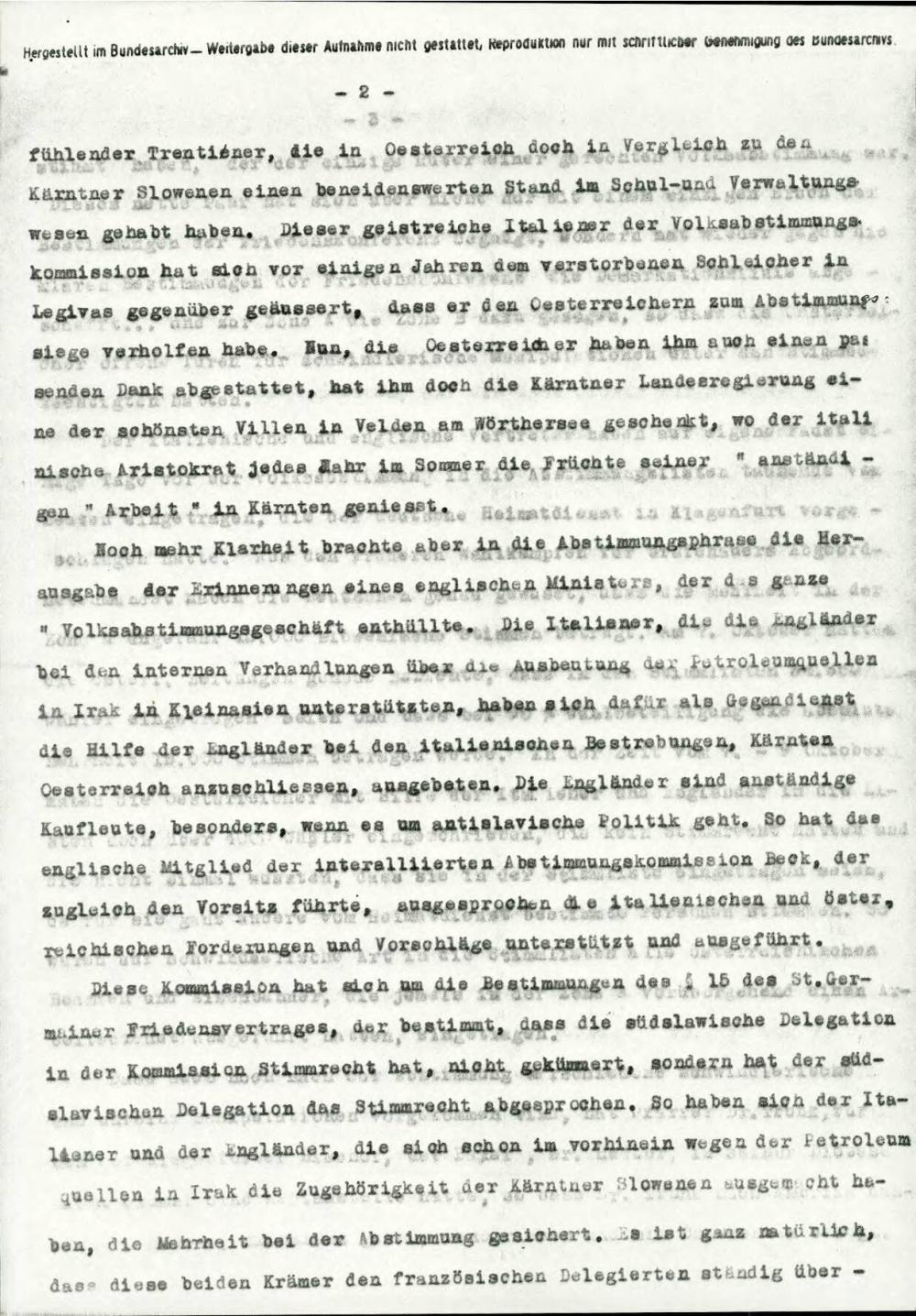 Prevod članka iz slovenskega časopisa Pohod, ki opisuje politične in narodnostne razmere na Koroškem 10 let po koroškem plebiscitu.