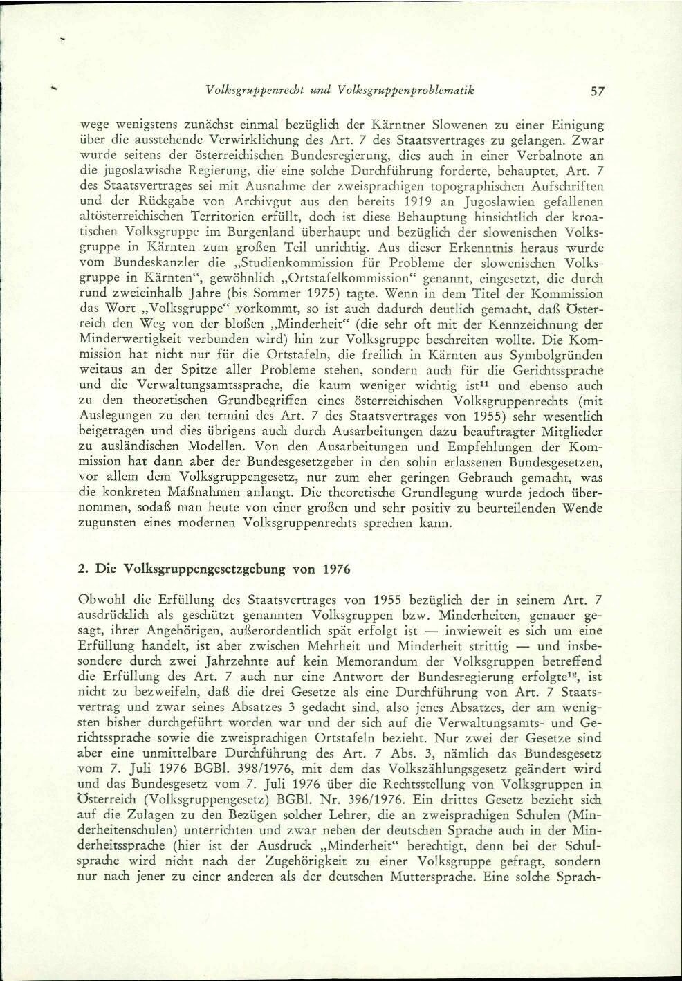 Volksgruppenrecht und Volksgruppenproblematik in Österreich Ende 1976