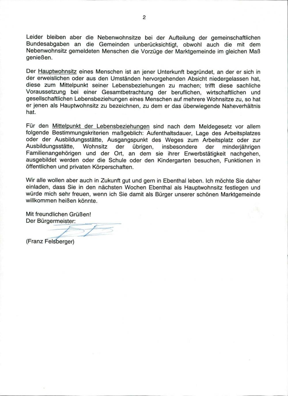 Volkszählung 2001; höfliche Einladung um Überprüfung Ihrer Wohnsitzanmeldung