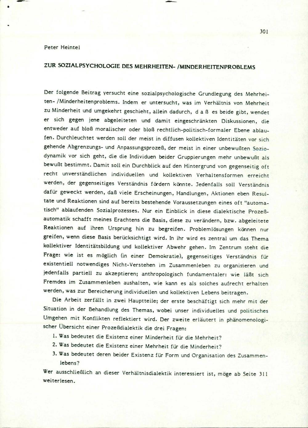 Zur Sozialpsychologie des Mehrheiten- / Minderheitenproblems