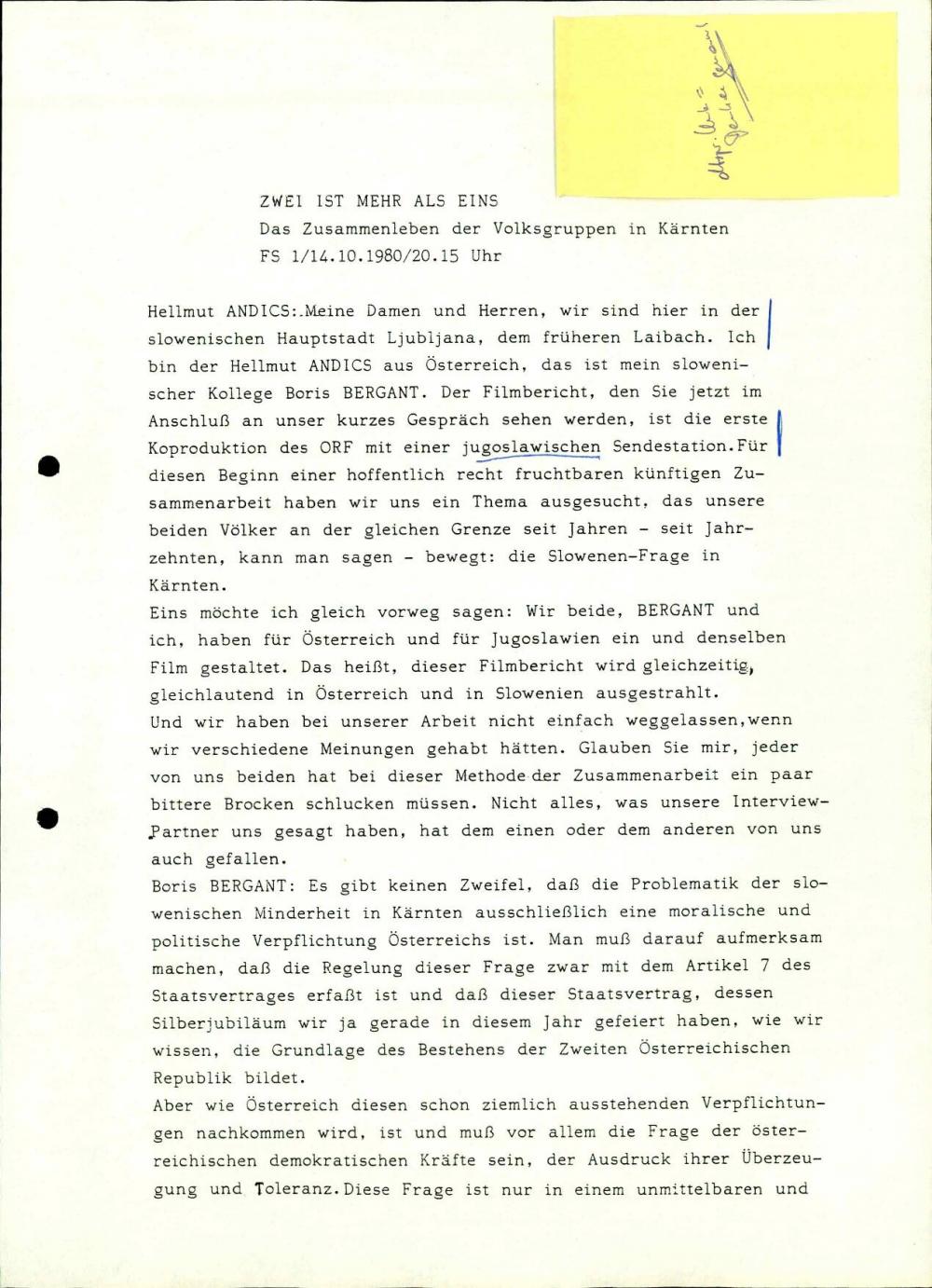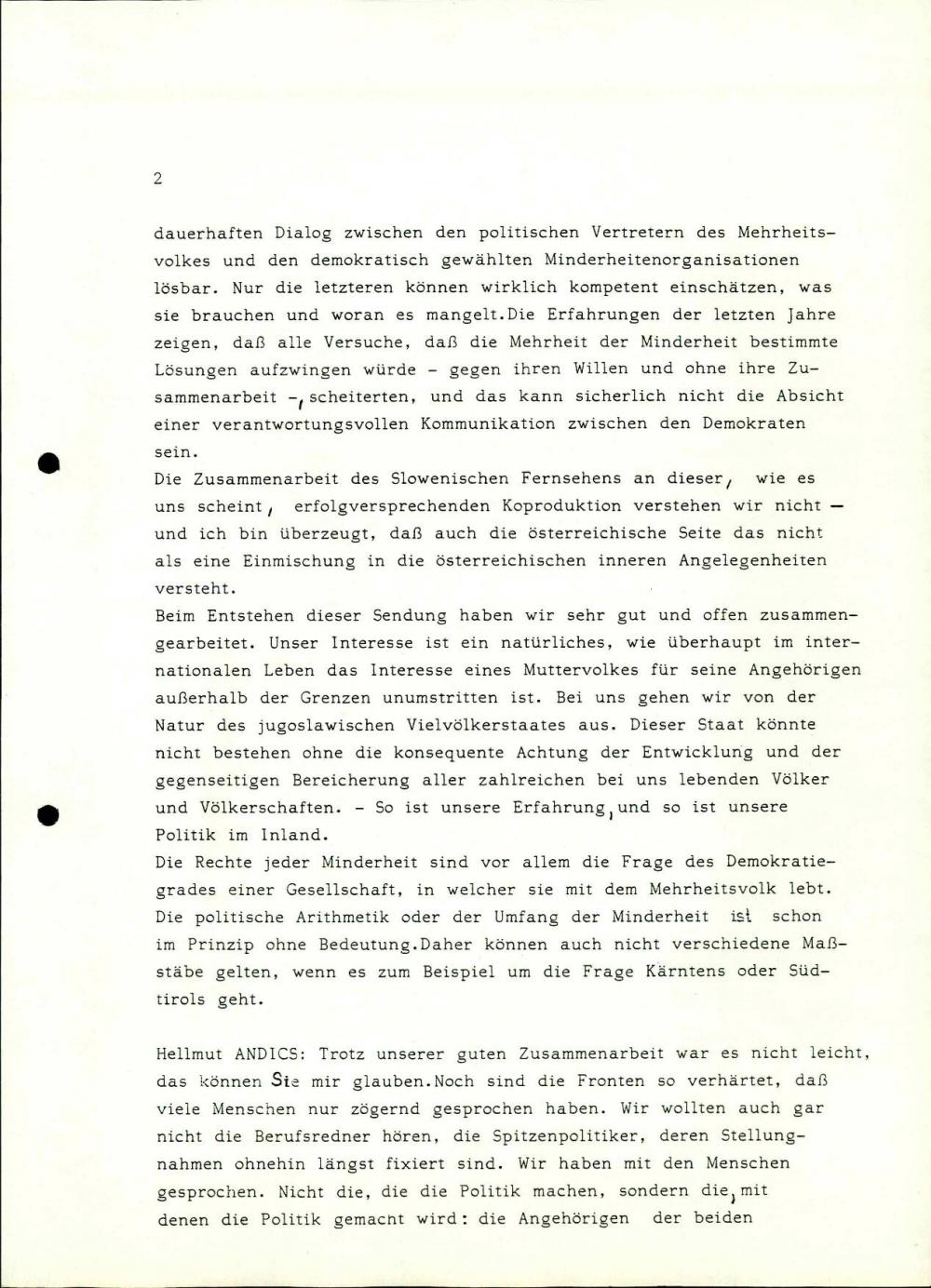 Besedilo televizijske oddaje v koprodukciji z ORF in RTV Ljubljana.